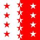 - Wallis: Eine horizontale Fahne in den Farben Rot und Weiss mit dem Wappen des Kantons in der oberen Hälfte.