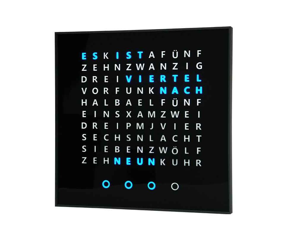 Um 09:15 Uhr zeigt die Uhr nicht Ziffern, sondern: „ES IST VIERTEL NACH NEUN.“